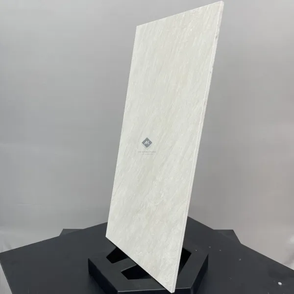 - Chất Liệu Porcelain (Gốm Sứ) Cao Cấp: Với xương gạch porcelain màu xám, sản phẩm có kết cấu đặc chắc, độ cứng cao và khả năng chống thấm nước gần như tuyệt đối (<0.5%). Điều này giúp gạch chống lại các tác nhân như ẩm mốc, ố vàng và cực kỳ bền bỉ trong quá trình sử dụng.