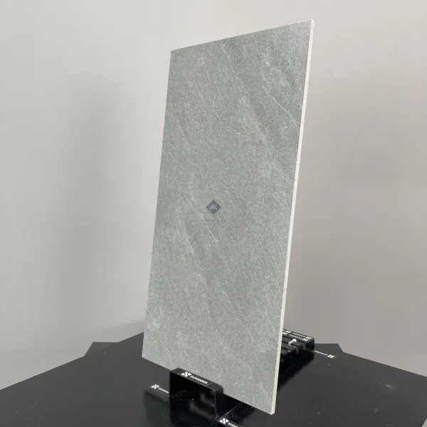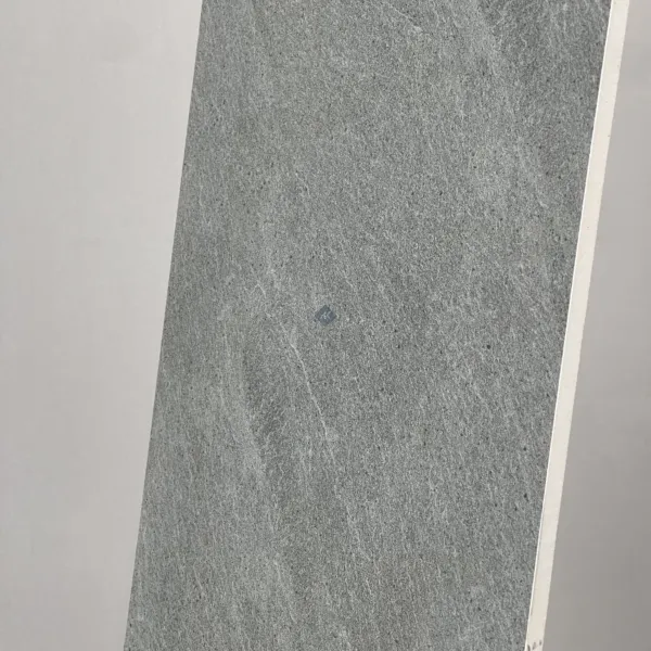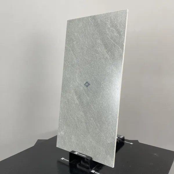 - Chất Liệu Porcelain (Gốm Sứ) Cao Cấp: Với xương gạch porcelain đồng chất màu xám, sản phẩm có kết cấu đặc chắc, độ cứng cao và khả năng chống thấm nước gần như tuyệt đối (<0.5%). Điều này giúp gạch chống lại các tác nhân như ẩm mốc, ố vàng và cực kỳ bền bỉ trong quá trình sử dụng.